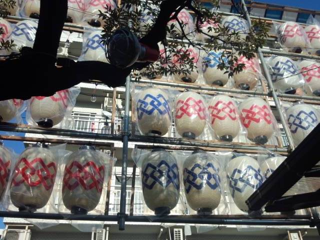 準備が着々と進んで当日を待つだけという感じです。鳥居の両側には沢山の提灯が飾られています。