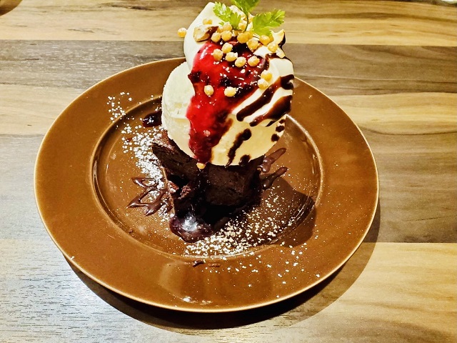 バニラアイスのブラウニー添え。どちらも美味しかったです。