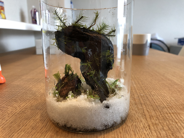 最近新しい趣味でテラリウムを始めました。アクアリウム(魚等飼育)、テラリウム(コケや陸上生物)、アクアテラリウム(両方)的な感じの奴です。