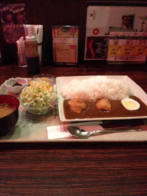 大盛り無料で、ピリ辛のヒレカツカレー
