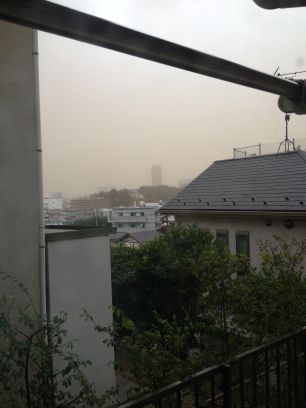 昨日3月10日の日曜は東京でも空がどんよりとした黄色に。