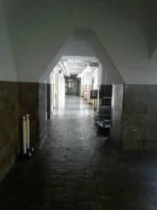 建築指導課がある5階までエレベータで上がり、EV前から廊下を撮った写真です。