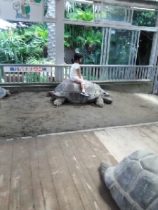 大きなカメも飼われていて、子供を背中に乗せて喜ばせてくれていました。
