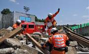 近所で開催された防災訓練は、中学校の校庭に仮想の災害現場を作るなど