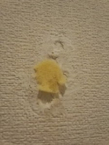 これは2個目なので壁面も穴だらけになっていまい、石膏ボード特有のボロボロと