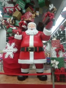 このサンタクロースは地下街の天井までつきそうな大きさです。