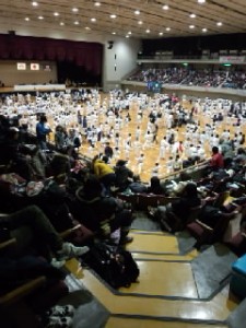 そろそろ8面に分けたエリアで試合が始まる為、場内放送もかなり激しい口調で