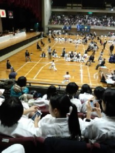 前方の席に並んでいたのは、女子校の空手部員の団体のようです。
