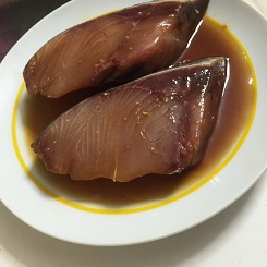 柚子の代わりにレモンをブレンドしたタレにブリを1時間ほど漬けます