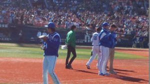 スタジアムの中は、テレビで見るよりも広いので移動に大忙しです。