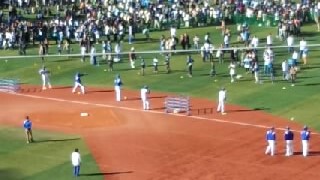 グランドではファンサービスの一つとして、選手達とのキャッチボールが行われて