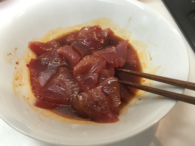 タレと絡めてしばらく冷蔵庫で寝かせます