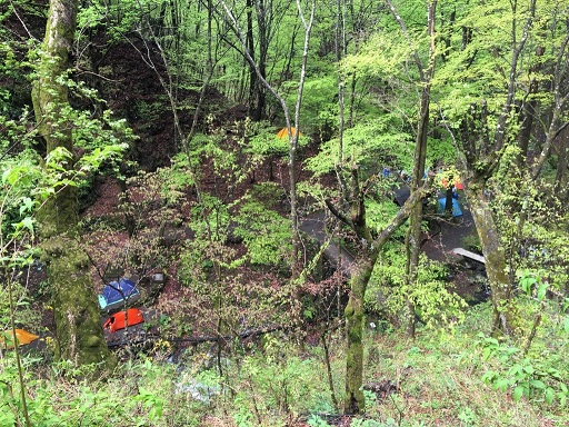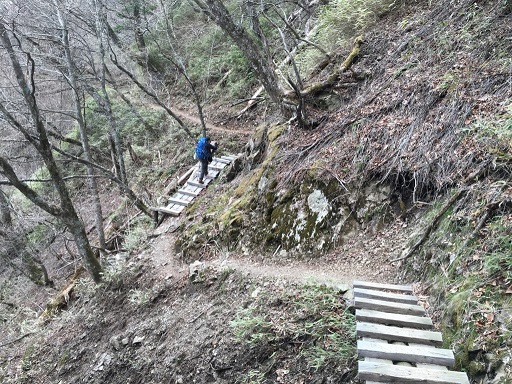 これから、標高差900m の 宿泊場所、三条の湯山小屋 まで下山が、