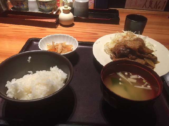 私が注文したのは「しょうが焼き定食」お値段はワンペーパー(1000円)