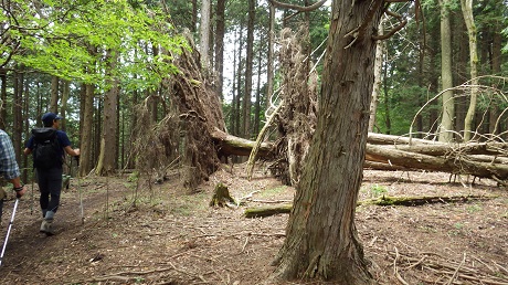 トンネルを抜けて歩いて行くと、一遍して倒れた木の姿が。