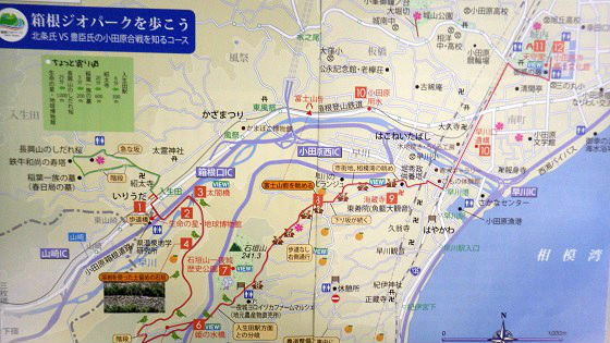 小田原では、いくつかのハイキングコースを企画して、観光案内で地図を用意してます。