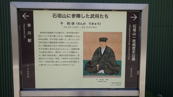早川から石垣山一夜城歴史公園までに小田原合戦に参加した武将たちの看板が八か所 建ってます。