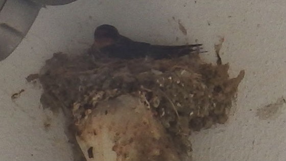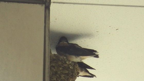 4月ごろから、ツバメの夫婦は泥と枯草を唾液で固めて巣を造ります。作業は約1週間ぐらい。