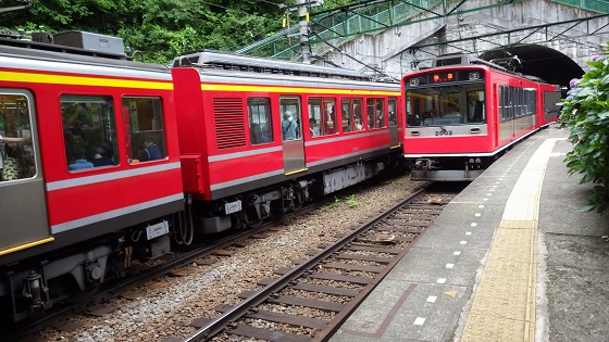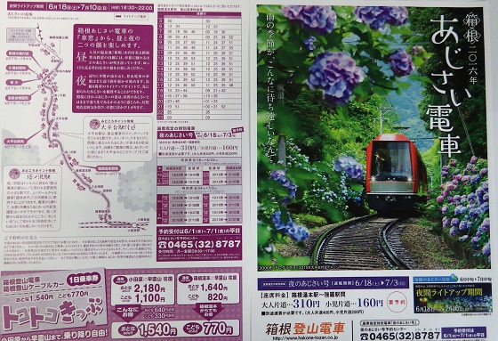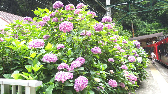 箱根湯本のあじさいを堪能したならば、いよいよ箱根登山電車に乗って、あじさい電車の旅です。