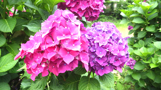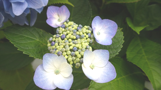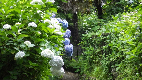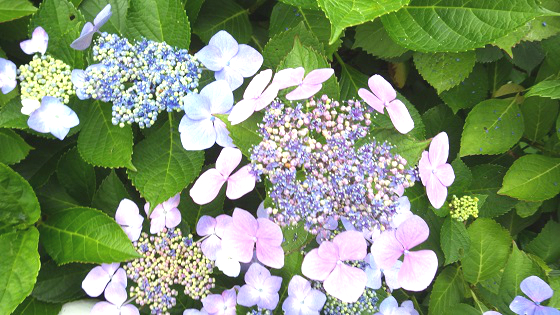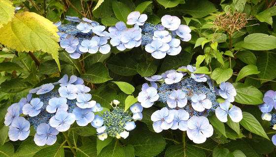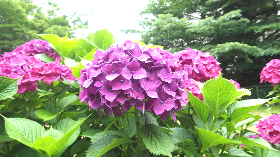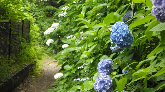 園内にはセイヨウアジサイ、ガクアジサイ、ヤマアジサイなどが植えられてある場所が有り、