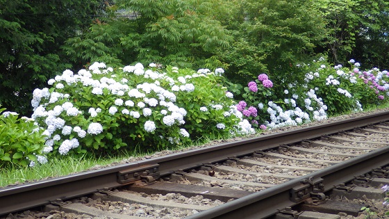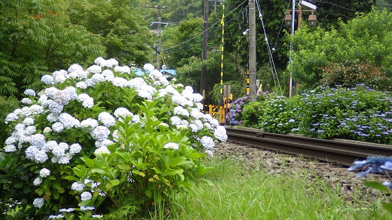 大平台駅のおススメは あじさいの小径 で登山電車一のあじさい景色です。