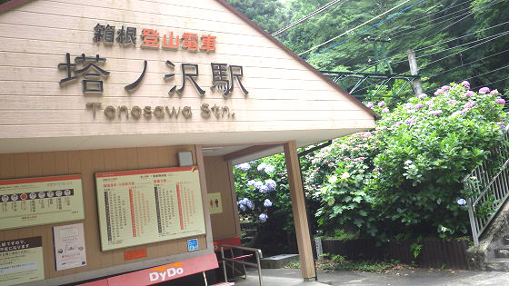 一駅目は塔ノ沢駅です。駅の廻りにはあじさいが咲きならんでます。