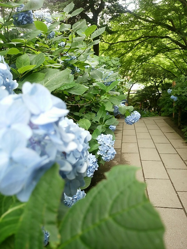 鎌倉の「アジサイの三大名所」の一つ。明月院へ明月院の歴史は古く、1160年に前身である明月庵が創設されました。以来、寺名が変わったり、権力者の保護を得てたくさんの伽藍が建てられてた時代もありましたが、いまでは明月院だけが残っています。臨済宗建長寺派に属するお寺です。明月院は、JR北鎌倉駅から東へ500メートルくらいの場所にあり、駅からも簡単にいけるも人気の理由ですね。