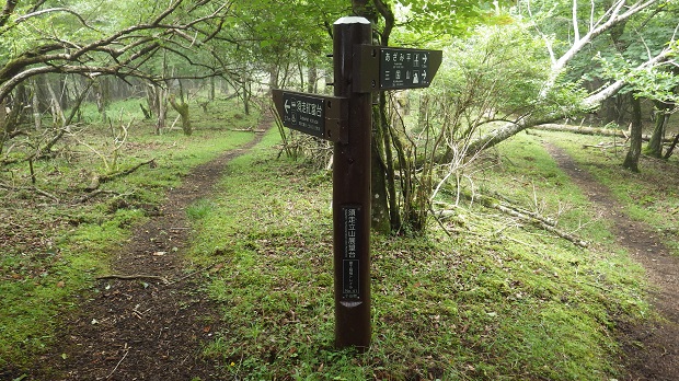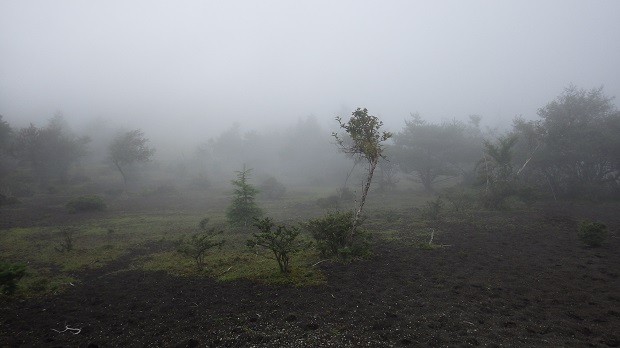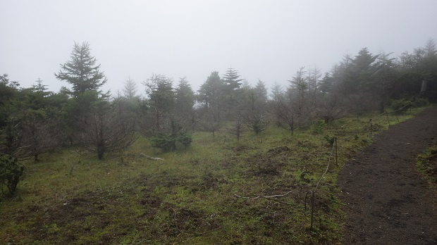 アザミ平は火山灰礫の原で、霧が酷く食事をする場所もなく此処での昼食は諦めて先に進む事にしました。083