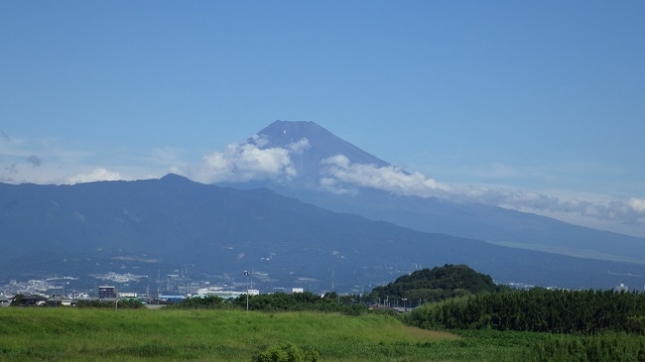 狩野川へ向かい石堂橋を渡ります。橋からは絶景の富士山が!この時は、幸先が良い感じがしていました。