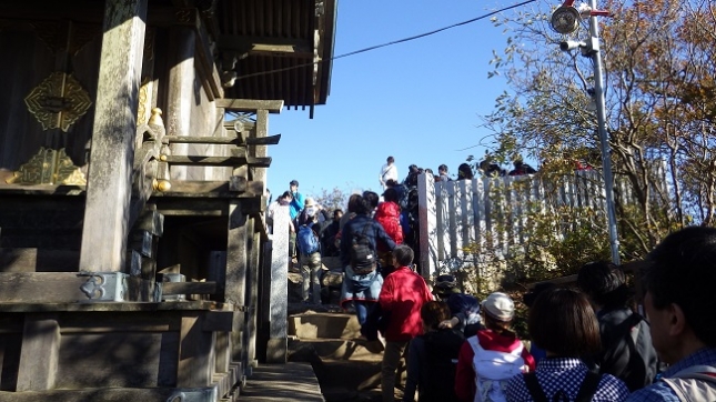 もうすぐ 女体山 山頂 ですが、山道で初めての経験。途中から遊園地のアトラクションを待つ様な行列が。