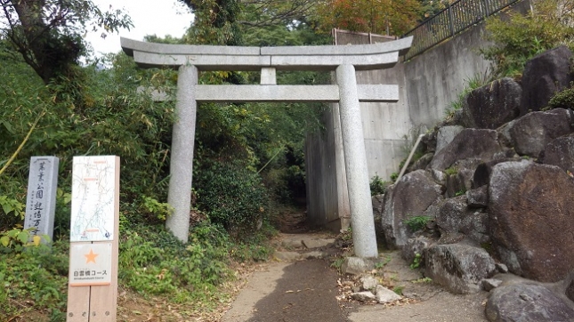 白雲橋コース入口には明神鳥居が、本殿 はそれぞれの山頂に有り 参道を登山する事になります。
