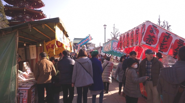 出店を見ながら歩くと、あっという間に川崎大師仲見世通りへ