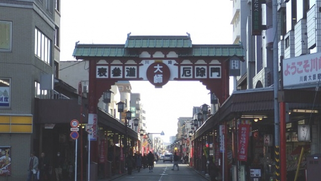 降りて約500mほどで大山門(川崎大師の入り口)に着きます