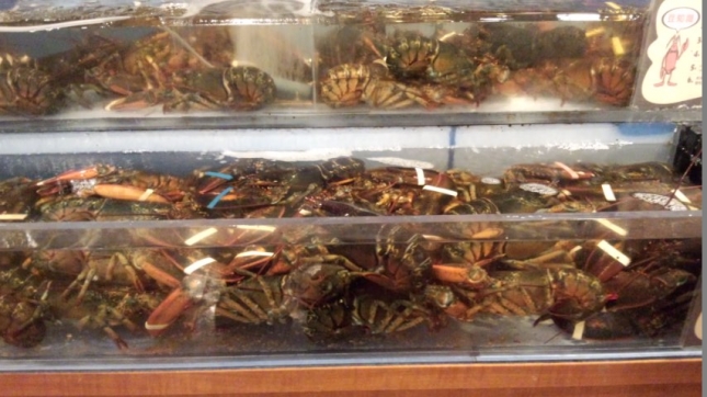 店内に入ると直ぐに見事なエビがS、M、Lと並んでいます。
