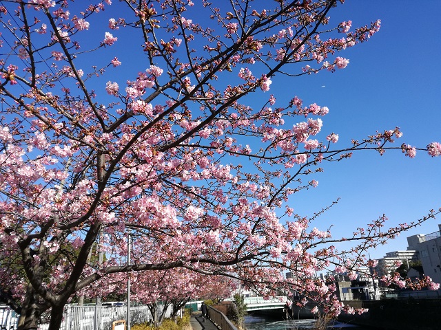 春がきた。大横川で一足早いお花見 【CAD 派遣 求人 アルファコーポレーション】