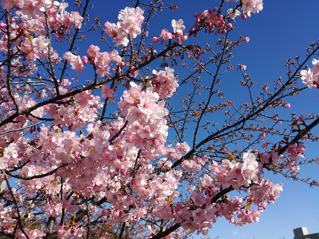 そんな中、営業中に綺麗に咲いている河津桜があったので写真を撮ってきました。