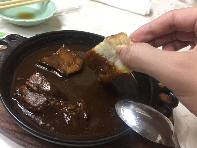 *口コミでは厚切りトーストとデミグラスソースが相性抜群らしいので