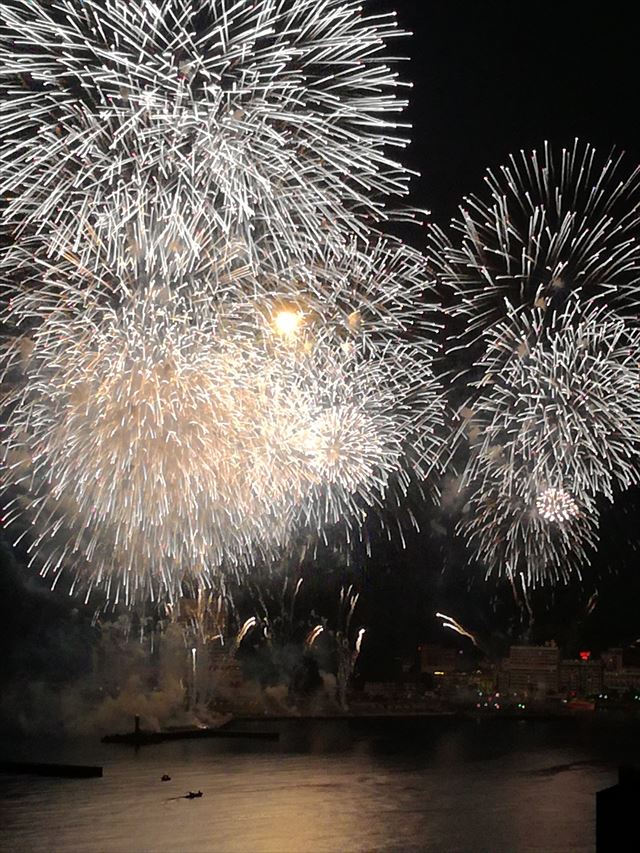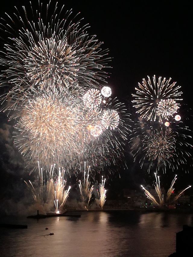 夜空に広がる花火や、水面に映る花火、反射される連弾の花火音そして、フィナーレを飾る「大空中ナイアガラ」の美しさ迫力は、都会の花火大会に引けを取りません!