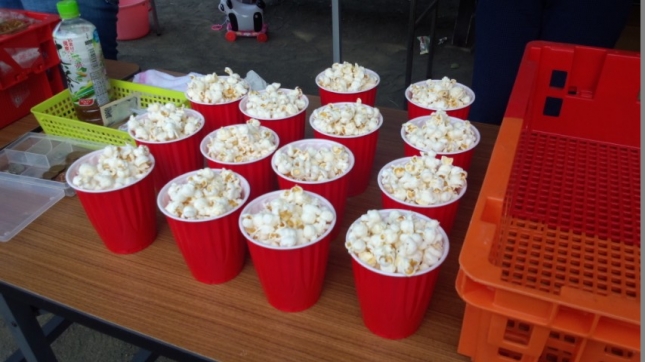 中々、好評でした。あちらこちらで、ポップコーンを食べながら祭りを楽しんでいる