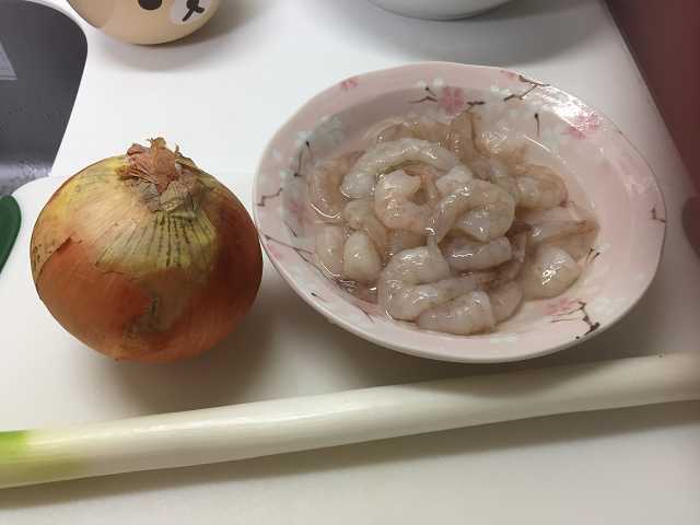 ・海老200g ・玉ねぎ半玉 ・長ネギ半分