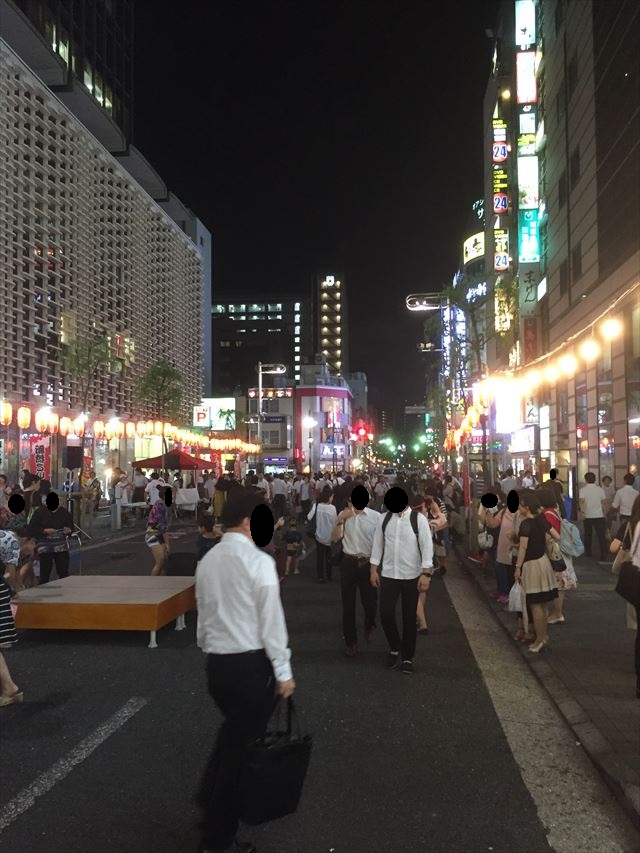 お祭り時は交通規制がかかっているようで外で座って飲んでいるサラリーマンなども見られたので来年は居酒屋ではなく