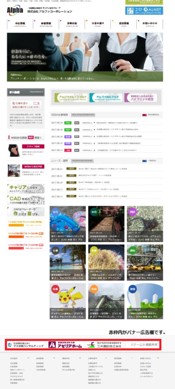 弊社アルファコーポレーションでは、ホームページにバナー広告を掲載頂けます。