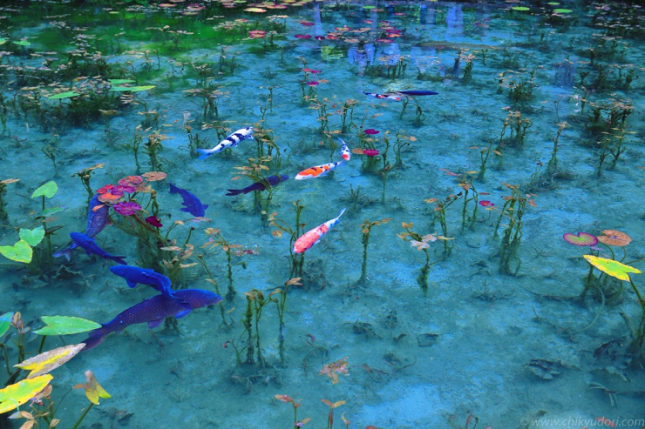 天気が続いたときに行きますと、透明な池に色鮮やかな鯉たちがスイレンの