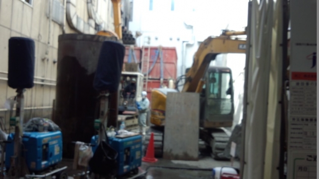 この状況から推測すると、多分「セメントミルク工法」と呼ばれる杭工事ではないかと