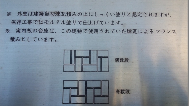 煉瓦積みは「フランス積み」と呼ばれる手法を用いたようです。