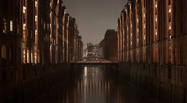 ハンブルクは港湾都市として栄えてきた街のため、中心部から少し外れると荷揚げされた物を一時的に保管していた倉庫が並ぶ倉庫街があります。この倉庫街は世界最大と言われており、現在でも一部は倉庫として使用されています。運河の周りに立ち並ぶ赤レンガの倉庫は、夕方になると太陽の光で照らされて幻想的になり、夜になるとライトアップされ、更に美しさを増します。
