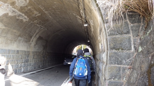 市立図書館通りの道を進むと線路下のトンネルが見えてきます。