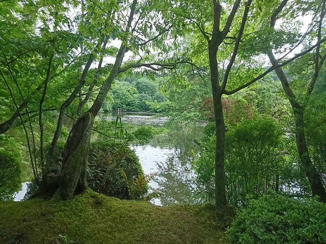 参道から見た湖畔の景色。マイナスイオンが出ていそうです。