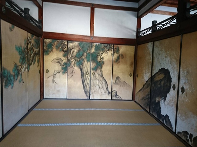 御殿の中の白書院と呼ばれる部屋です。部屋全体に描かれている絵が迫力満載でした。