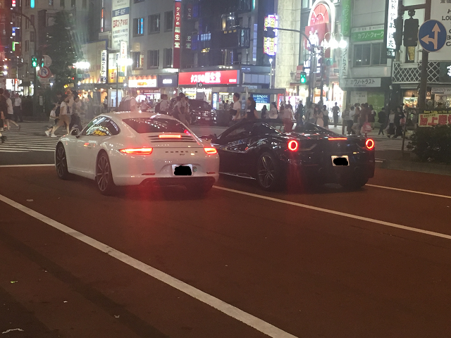 左は、ポルシェ 911カレラ、そして右はフェラーリ 488スパイダー です!